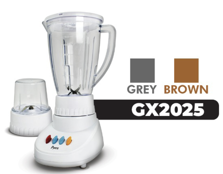 The Pyrex GX 2025 Blender Grinder 2-in-1 is a versatile kitchen appliance designed to simplify your food preparation tasks. Equipped with a robust 500W motor, it efficiently handles blending and grinding functions. The appliance features a durable 1.5-liter polycarbonate jar and stainless steel blades, ensuring longevity and consistent performance.